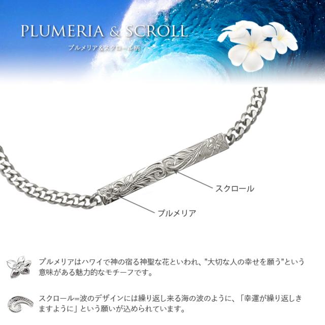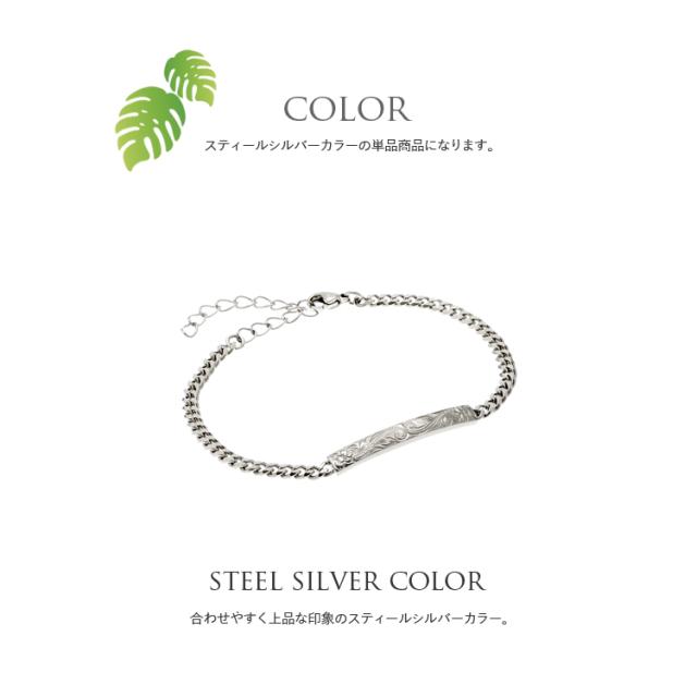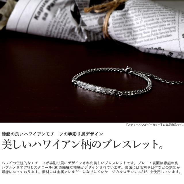 ハワイアンジュエリー ハワイアン ブレスレット 刻印無料 ステンレス 金属アレルギー対応 サージカルステンレス プルメリア スクロール gbss108st