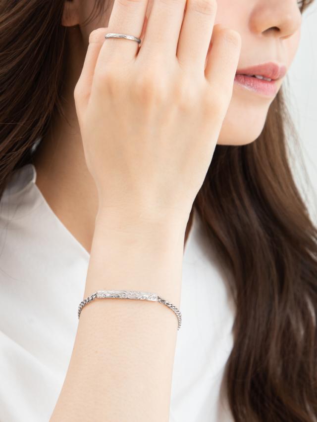 ハワイで縁起が良いとされているプルメリア(花)とスクロール(波)の繊細な模様が素敵なブレスレット。