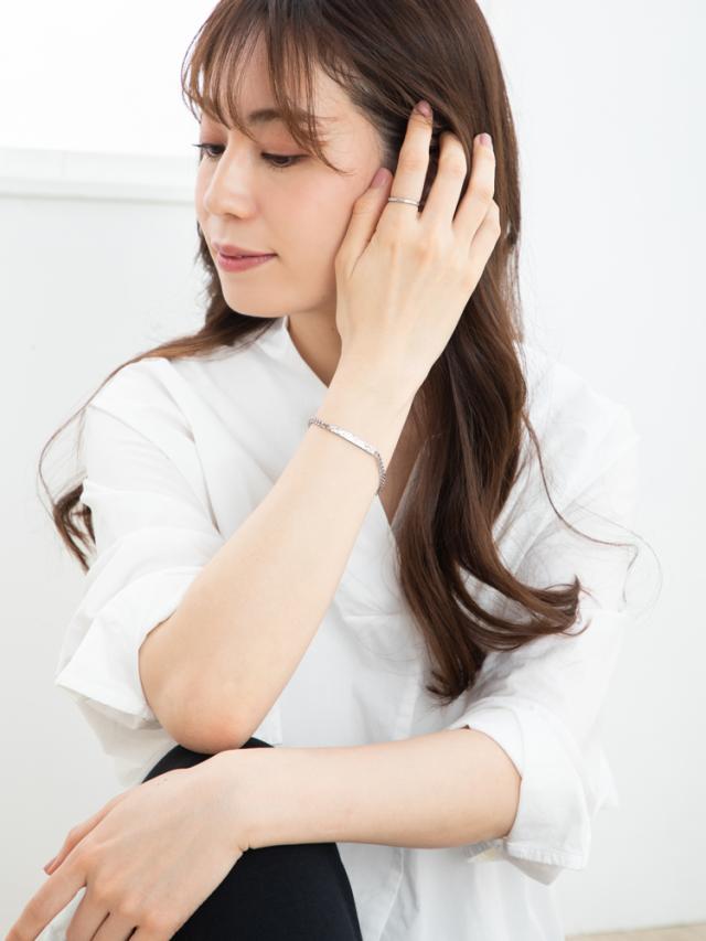 カット仕上げのキヘイチェーンが手元に上品な存在感を与えてくれます。