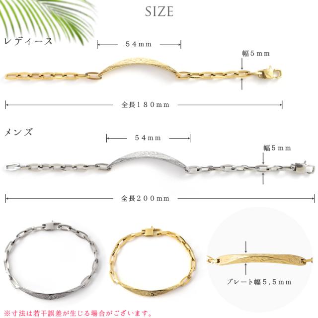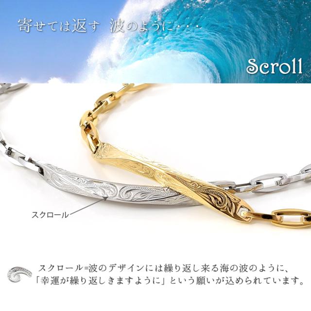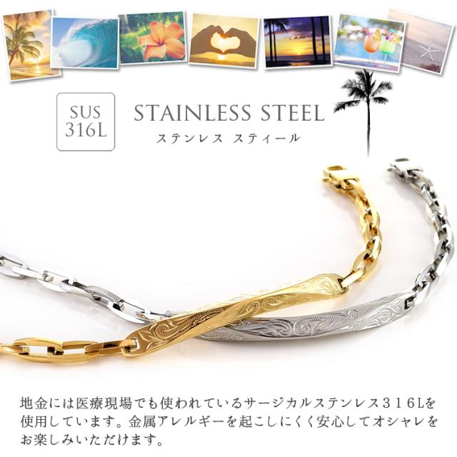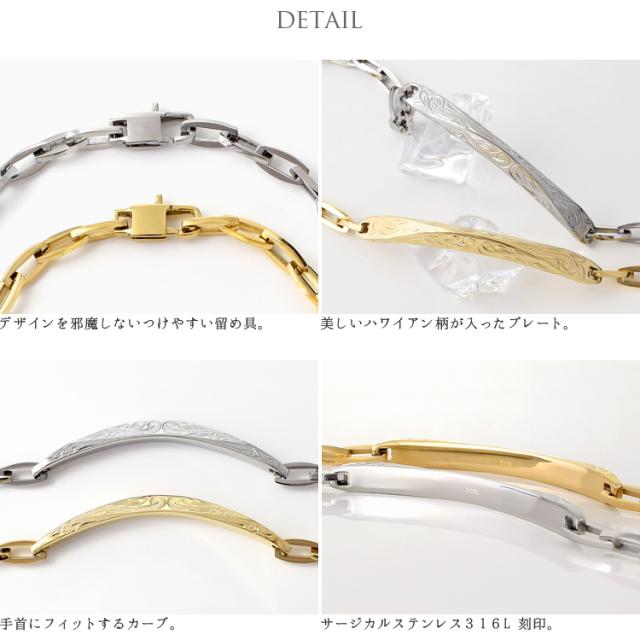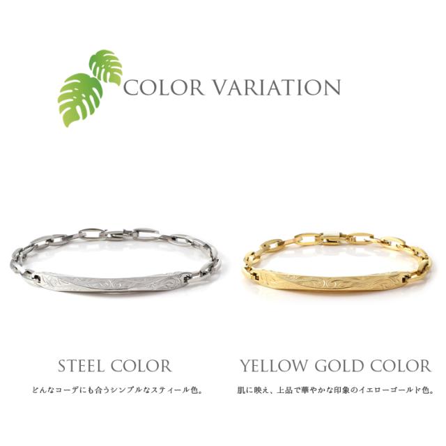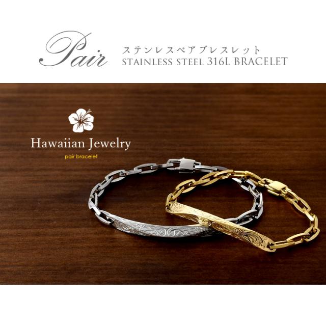 ハワイアンジュエリー ペアブレスレット 2本セット 刻印無料 ステンレス つけっぱなし シンプル プレート スクロール おしゃれ ハワイアン スティールシルバーカラー イエローゴールドカラー サージカルステンレス 316L ノンアレルギー 金属アレルギー対応 (gbss132pair)