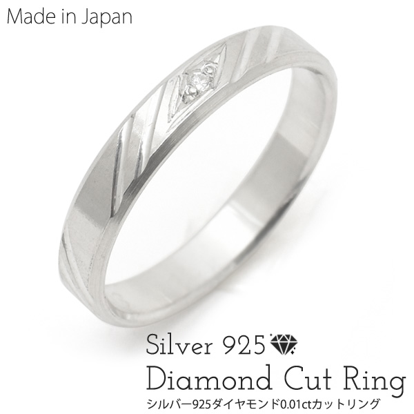 シルバーリング 指輪 シルバー925 ダイヤモンド 0.01ct カットリング ラインタイプ 誕生日 プレゼント 在庫限り 無くなり次第終了