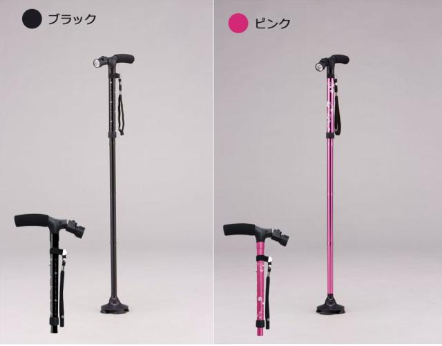 - 杖が倒れないように造られているので便利と聞いてます。使わない時は折りたためるので、置場所に困りません。ライト用の電池も付いてるので満足です。良い買い物が出来ました。
