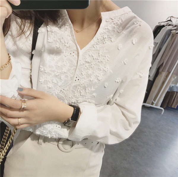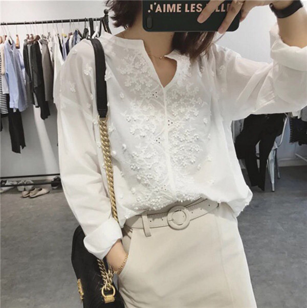メ便送料無料 スキッパーシャツ ブラウス 花柄 ノーカラー レディース ブラウス 長袖 Vネック スキッパーシャツブラウス チュニック