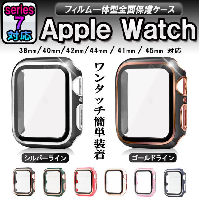 アップルウォッチ ガラスフィルム一体型保護ケース ツートンカラー カバー Apple Watch 全面保護 高透過率 指紋防止 衝撃吸収 41mm 45mm 38mm 40mm 42mm 44mm