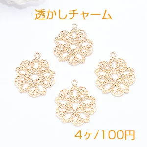 透かしチャーム フラワー 29×33mm ゴールド【4ヶ】