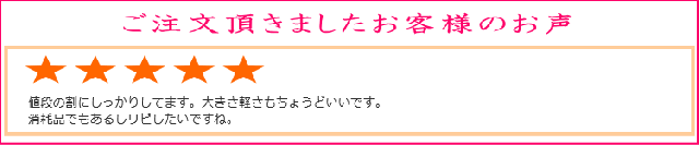 - 娘の為に購入しました。 出荷も早めて頂き、とても良い品がつきました。 娘も喜んでいました! 宿泊体験に間に合いました(^-^) おまけも素晴らしい物でまた機会あったら是非 利用させて頂きます!スタッフ...