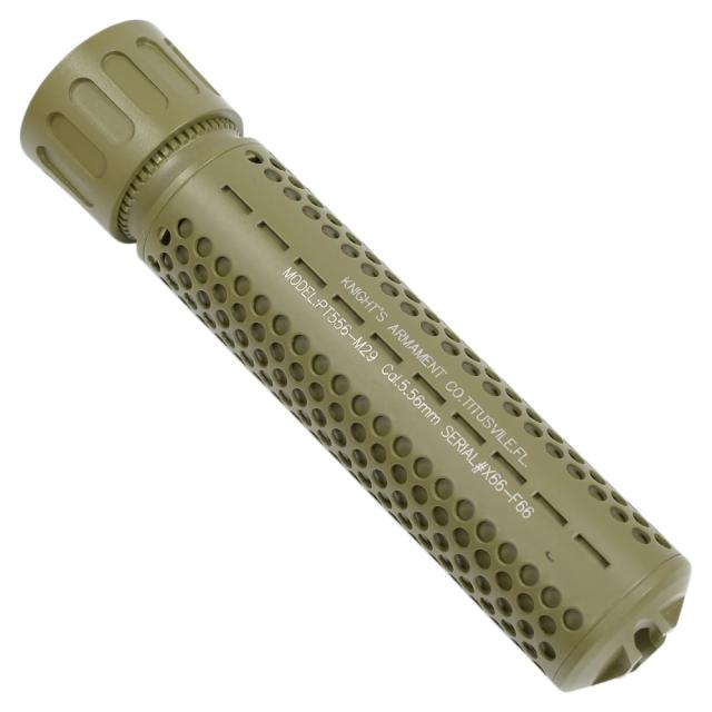 5KU Airsoft サイレンサー ナイツ型 5.56 QDC 14mm逆ネジ ハイダー付 [ タン / ロング ][sil024de]