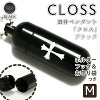 遺骨ペンダント メモリアルペンダント ブラック ( 中 ) 「 Cross クロス 」 お守り袋+ホルダーフックつき