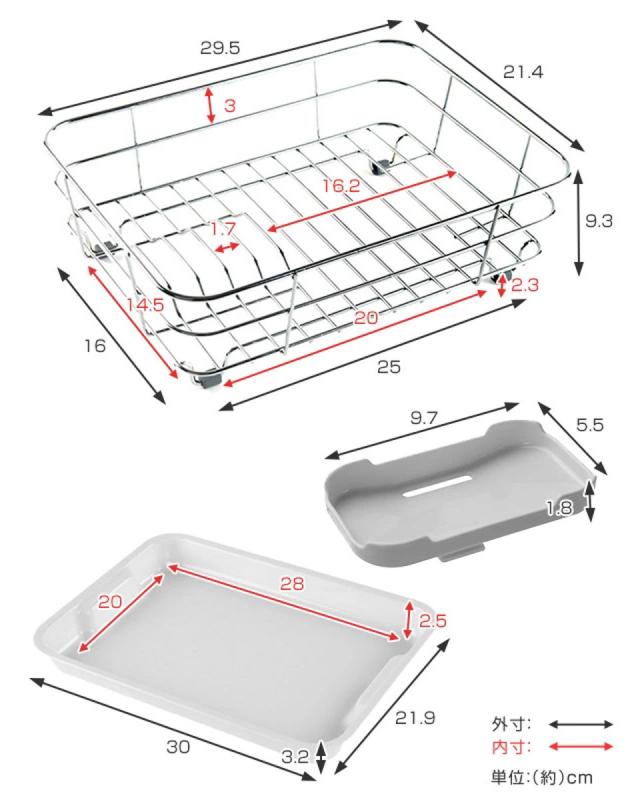 細々した物の水切りに便利な小物トレー付き