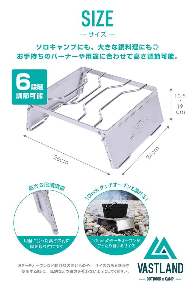 10inchのダッチオーブンがピッタリ置けるサイズで、ソロキャンプにも家族キャンプにもお使い頂けます。