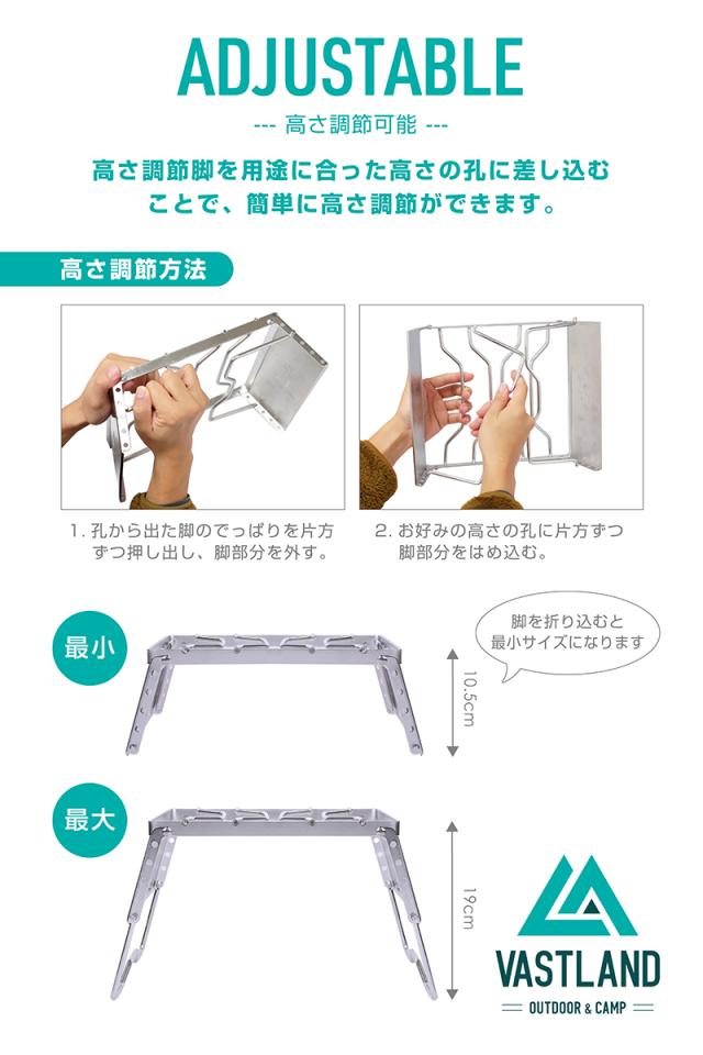 VASTLAND クッカースタンド グリルスタンド マルチスタンド キャンプ アウトドア BBQ 6段調整 折りたたみ式 収納袋付き
