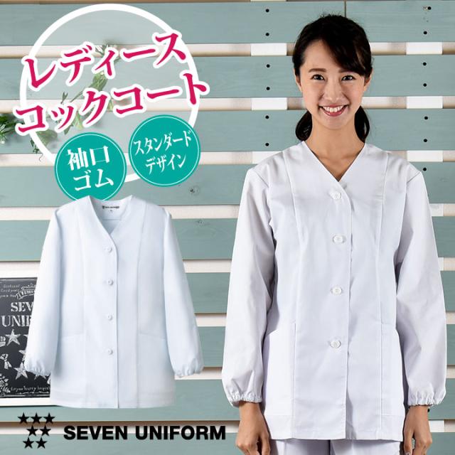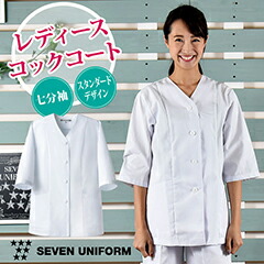 AA336-8 低価格・高品質で人気の女性用長袖コックコート 白衣 コート SEVEN UNIFORM 女性用