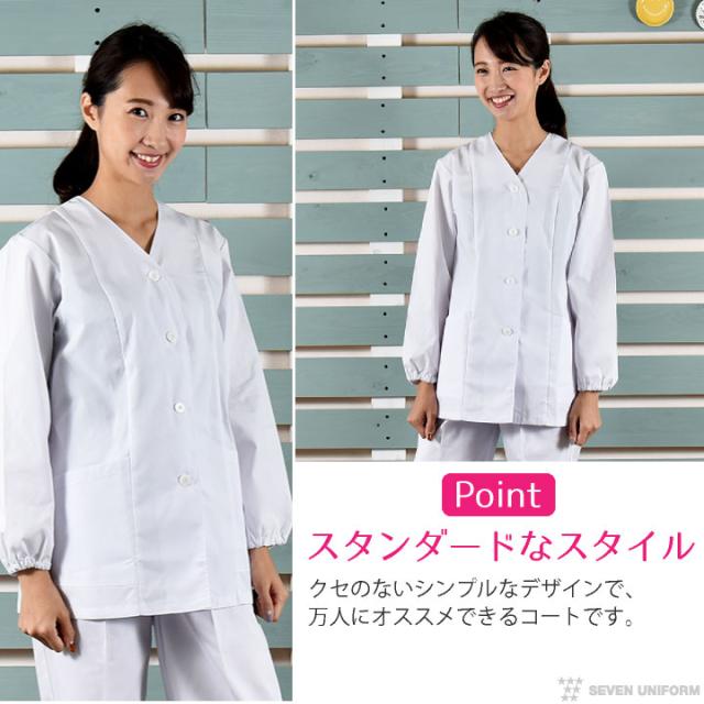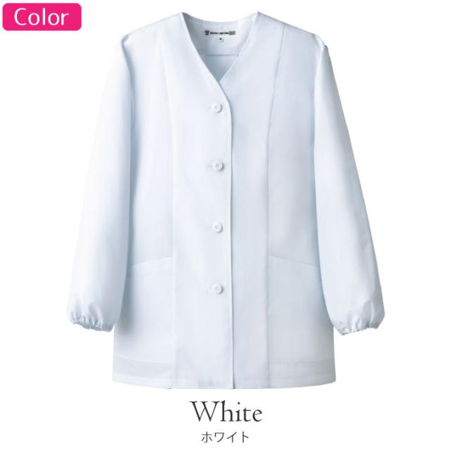 スタンダードな襟なしの白衣コート。