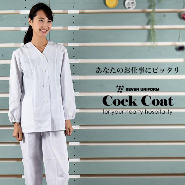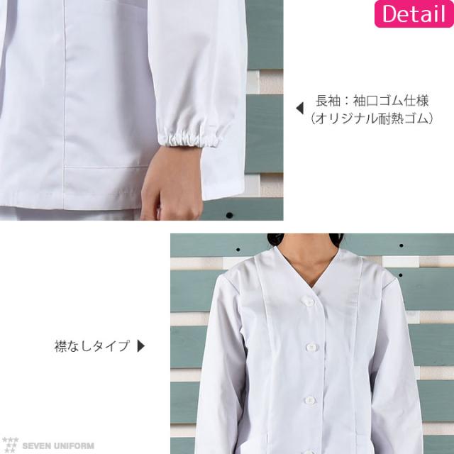 コックコート 襟なし 長袖 セブンユニフォーム 調理白衣 割烹着 レストラン 居酒屋 中華料理 サービス ユニフォーム レディース 長袖コックコート su-aa336