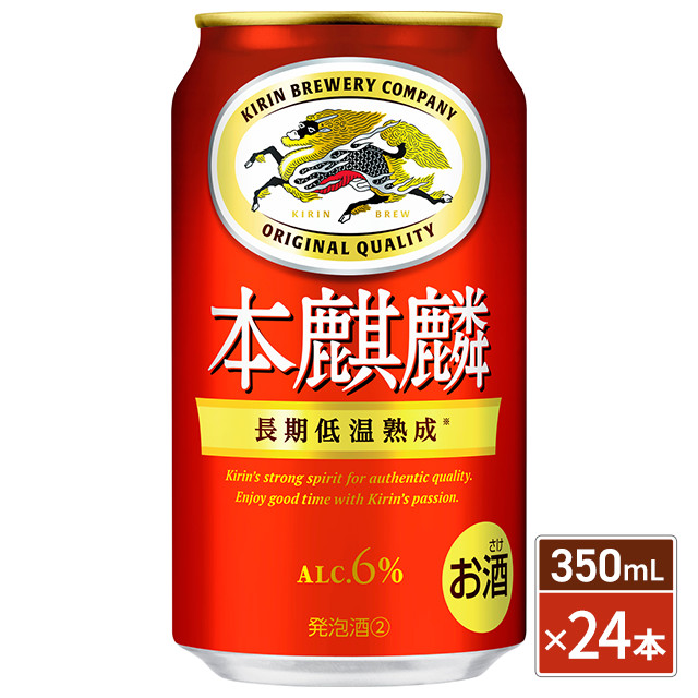 商品名 キリン 本麒麟 350mL×24本 容量 350mL×24本 原材料名 発泡酒(国内製造)(麦芽、ホップ、大麦、コーン、糖類)、大麦スピリッツ アレルギー特定原材料 − 賞味期限 商品の発送時点で、60日以上あるものをお届けいたします 保存方法 常温 アルコール度数 6%