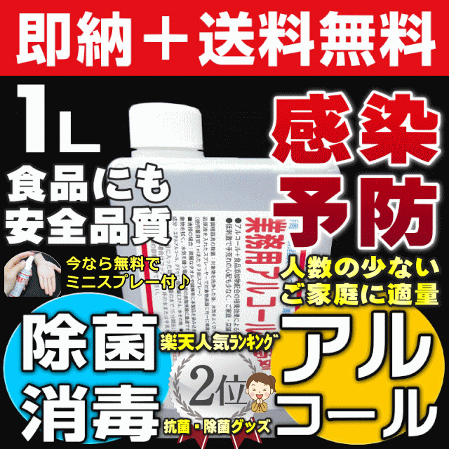 - 中々液体が見つからない中、この値段での量に満足です!貴重なアルコールなので無駄遣いせずに、使わせて頂きます!!ありがとうございます。おまけ嬉しかったです。
