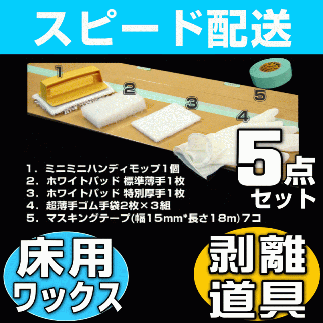 【無料サンプル付!】【フローリングワックスはがしもこれで安心♪】床ワックス剥離5点セット【スポンジパッド・モップ・手袋