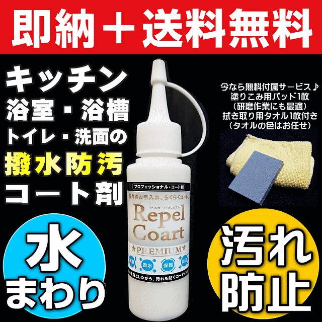 心躍る新築新居,セカンドハウスやリフォーム後♪できるだけ”キレイをキープ&お掃除をラク”にしたいですよね。そのためには、最近人気の「汚れ防止加工=コーティング」がとても有効です。この商品は、誰でも簡単にプロ並の施工ができる【水まわりシリコン撥水コーティング剤「リペルコート」の新型プレミアムバージョン】!マイクロ研磨剤配合で汚れを落としつつ、微細な凹凸を埋めて光沢再生&撥水効果♪美観の向上と防汚コーティングが同時に行えます!塗り込み用スポンジも無料付属で超お得♪失敗してもはがせる安全性と塗ってこするだけの簡単施工が人気です!
