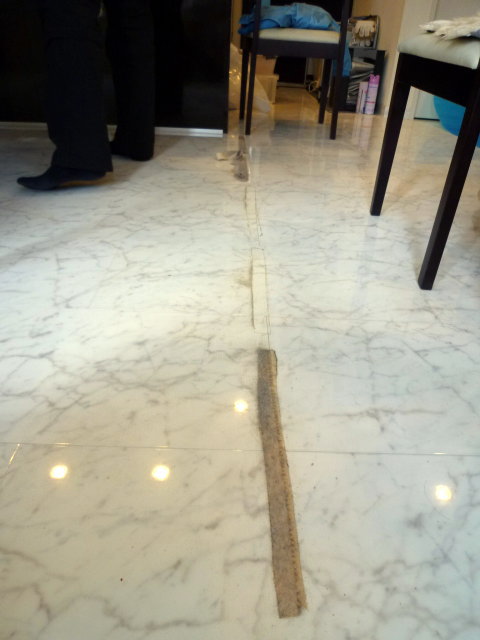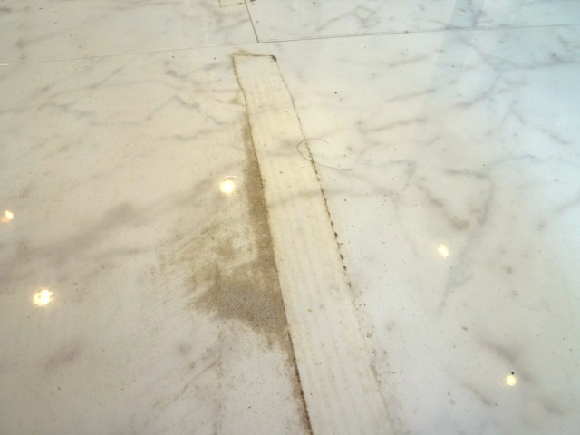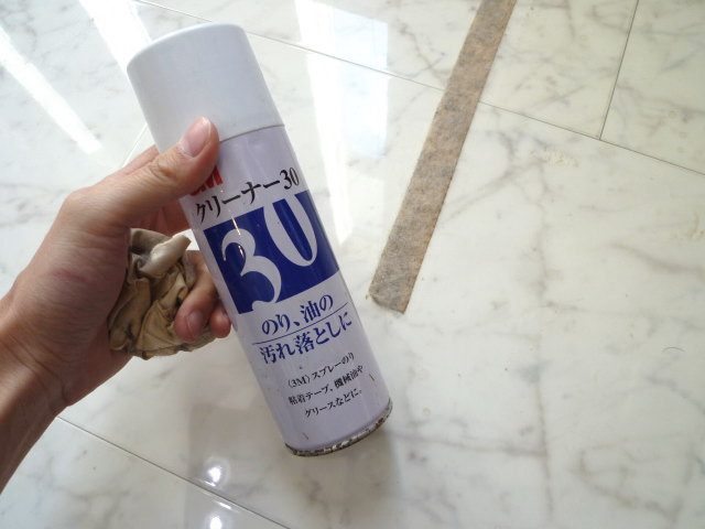 ラグやカーペットを固定していたテープ跡。普通の洗剤ではなかなか取れません。