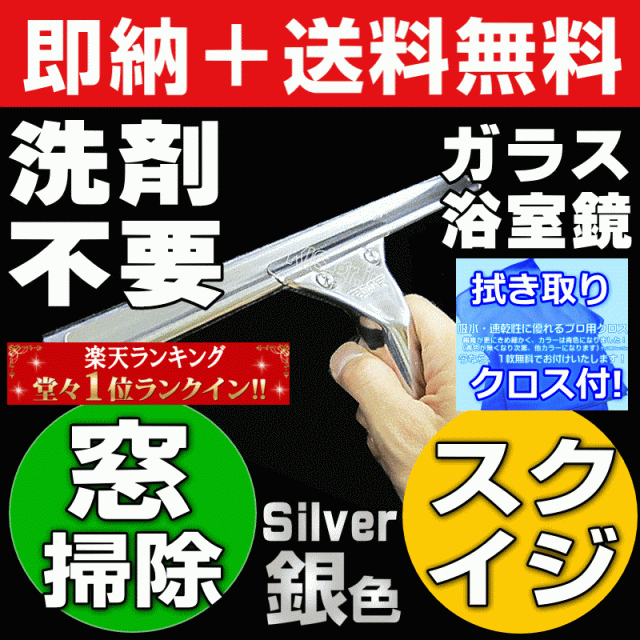 プロの清掃業者仕樣の窓用スクイジー。ガラスを水で濡らしてなぞるだけ♪簡単に窓掃除ができます。お風呂上がりにスクイジーで水滴を落としておくとカビ防止にもなり、水滴の残った鏡に使えば、白いウロコ(水垢)の発生を簡単に抑えることができます!その他、結露の水滴取りなど、生活の様々なシーンで使える業務用用スクイージー、楽天ランク堂々1位受賞商品です!しかも拭き取りマイクロクロス付き♪