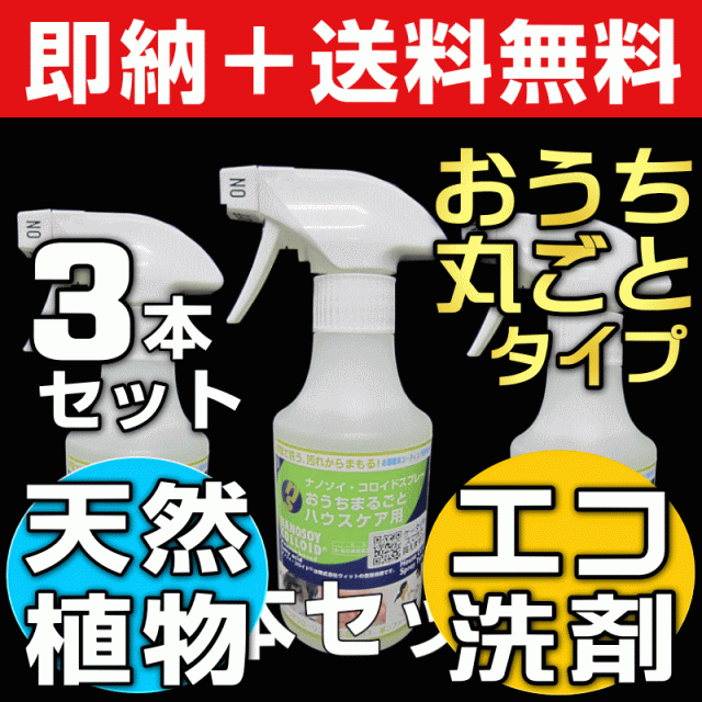 化学物質過敏症やアトピーなど、薬品を使うことに抵抗のある方にオススメなのが、天然の大豆成分だけで作られた、人・環境に優しい天然洗剤のナノソイクリーナーシリーズ「お家まるごとハウスケア用」の新型コンパクト300mlタイプ、送料無料のまとめ買い3本セットです。洗浄と同時に天然の防汚ワックス、消臭、除電、除菌効果でフローリング床や窓ガラス、ソファーにぬいぐるみ、赤ちゃんや幼児用の玩具、ペット用品、自転車や電子レンジなどの家具家電まであらゆる場所に安心して使えます。