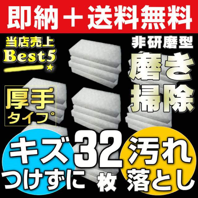 【無料サンプル付!】送料無料 お掃除プロがこっそり愛用♪「傷つけないこすり掃除用ホワイトパッド しっかり厚手タイプ32枚