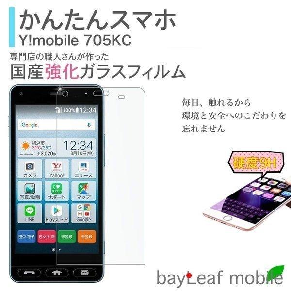 かんたんスマホ 705KC Y!mobile 京セラ ワイモバイル シニアスマホ フィルム ガラスフィルム 液晶保護フィルム クリア シート 硬度9H 飛散防止 簡単 貼り付け