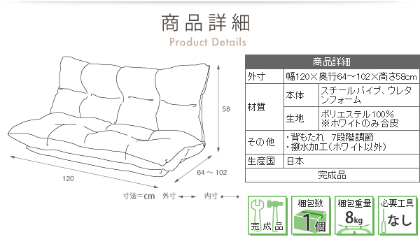 ◆大人気のソファーが期間限定で激安特価で復活◆ ゆったり ソファ 120 幅 フロアソファ 2人掛け 2人用 リクライニング ラブソファ ワッフル 風生地 撥水 加工済み ローソファー