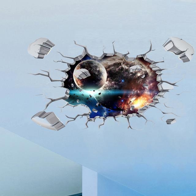 ウォールステッカー フロアステッカー インテリア 模様替え 家 部屋 壁 床 リビング 隕石 宇宙 3D だまし絵 ヒビ