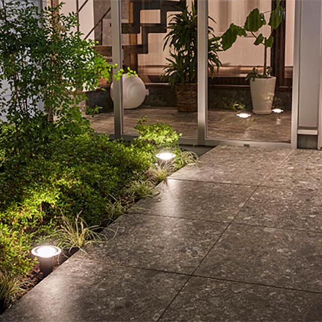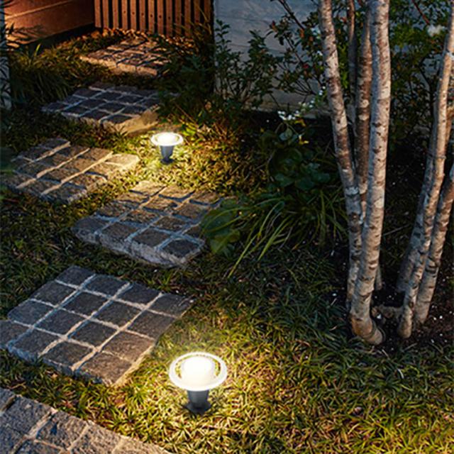 ●床を照らしアプローチの安全を演出するセットです。植栽も照らすことができ、落ち着きのある夜の空間を演出します。