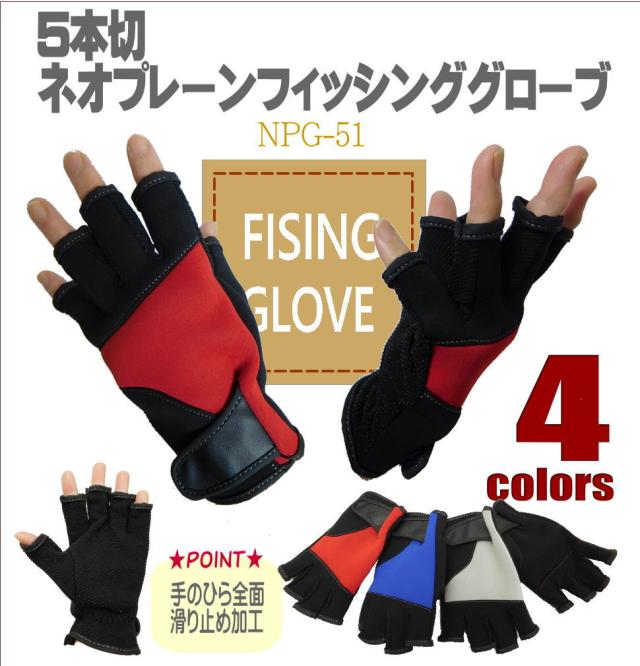 メール便送料無料 防寒 ネオプレン フィッシンググローブ 5本切 指出し 指無し 指きり 作業用手袋 釣用 手袋 NPG-51 クロロプレン