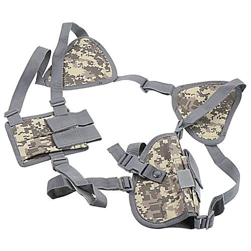 左脇にホルスター、右脇に2連のマガジンポーチを備えたショルダーホルスターです。