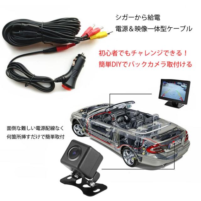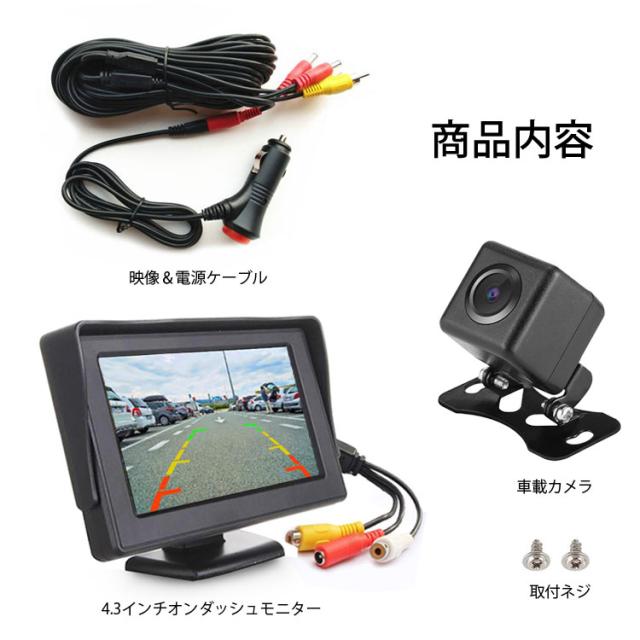 バックカメラセット 4.3インチオンダッシュモニター 超小型車載カメラ 電源、映像一体式ケーブル OMT43B021AV37S