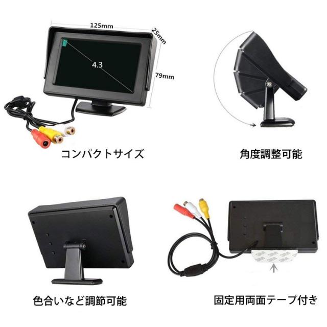 ・4.3インチオンダッシュモニター+小型バックカメラ+シガー取付延長ケーブル 3点セットの出品で御座います