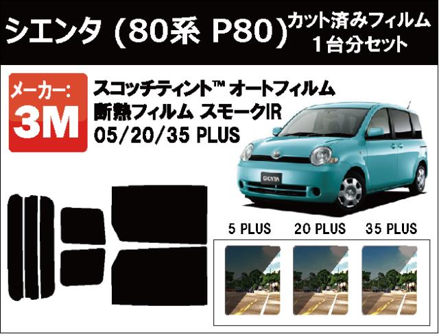 高品質 断熱 3M (スリーエム) スモークIR PLUS トヨタ シエンタ (80系 P80) カット済みカーフィルム リアセット