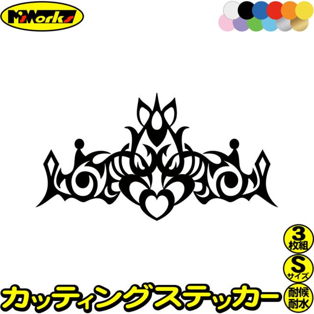 バイク ヘルメット 車 おしゃれ ステッカー 王冠 クラウン トライバル 9 (3枚1セット) サイズS カッティングステッカー 全12色 かわいい ティアラ 給油口 タンク クラウン ステッカー 防水 耐水 アウトドア デカール 転写シール 32mmX60mm