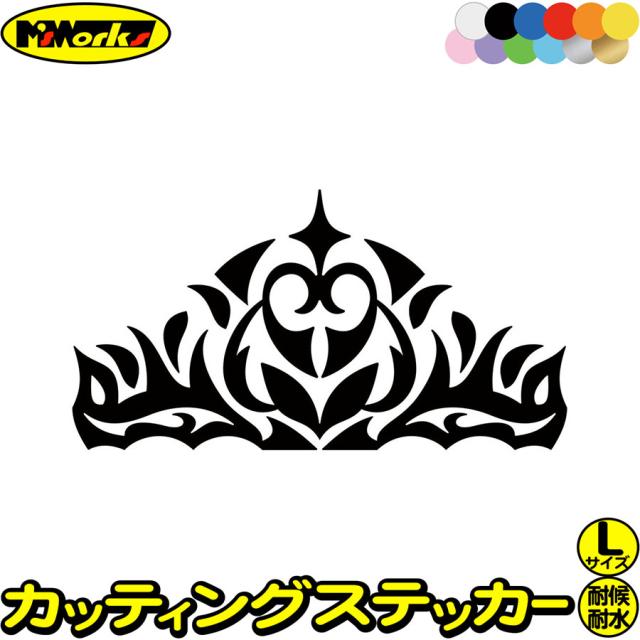 王冠 クラウン トライバル 6 (1枚1セット) サイズL カッティングステッカー 全12色 車 バイク ヘルメット タンク スノーボード かわいい おしゃれ ティアラ ワンポイント ステッカー 防水 耐水 アウトドア デカール 転写シール 79mmX150mm