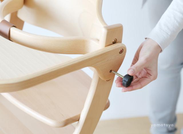 ヨーロッパのEN基準と日本のSG基準をクリアしたデザイナーズベビーチェア成長に合わせ、細かく高さ調節でき、いつも足が届く姿勢で座ることができるベビーチェア。