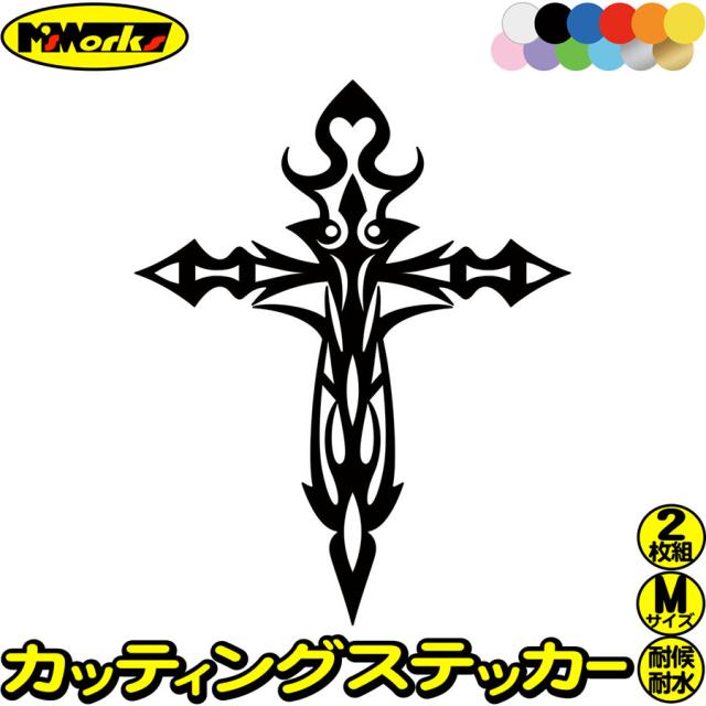 バイク ヘルメット おしゃれ ステッカー クロス 十字架 cross トライバル 1 (2枚1セット) サイズM カッティングステッカー 全12色 車 かっこいい かわいい 給油口 クロス ステッカー 防水 耐水 アウトドア デカール 転写シール 119mmX95mm