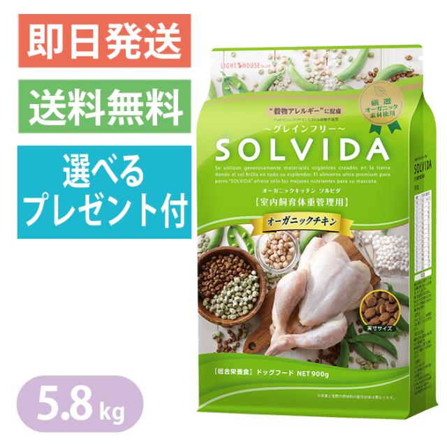 ◆送料無料◆【SOLVIDA】ソルビダ グレインフリー チキン 室内飼育体重管理用 5.8kg ドッグフード 『安全・安心!美味しくて食いつき抜群』選べるプレゼント付き