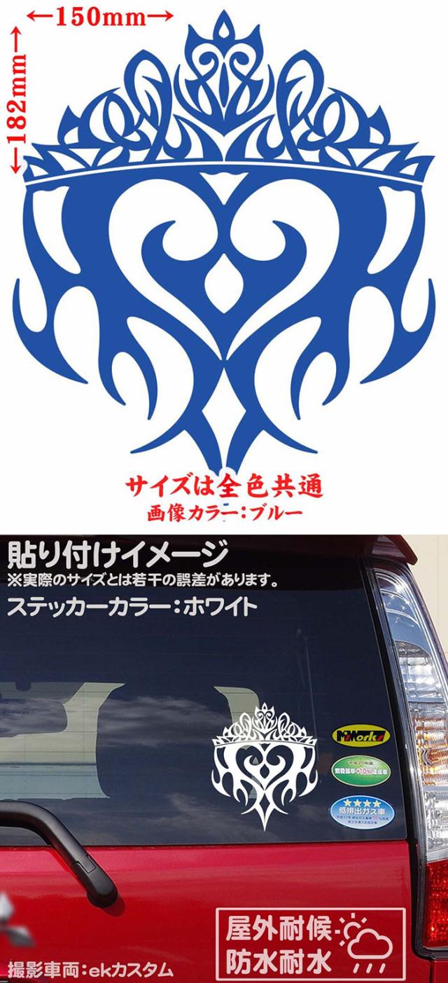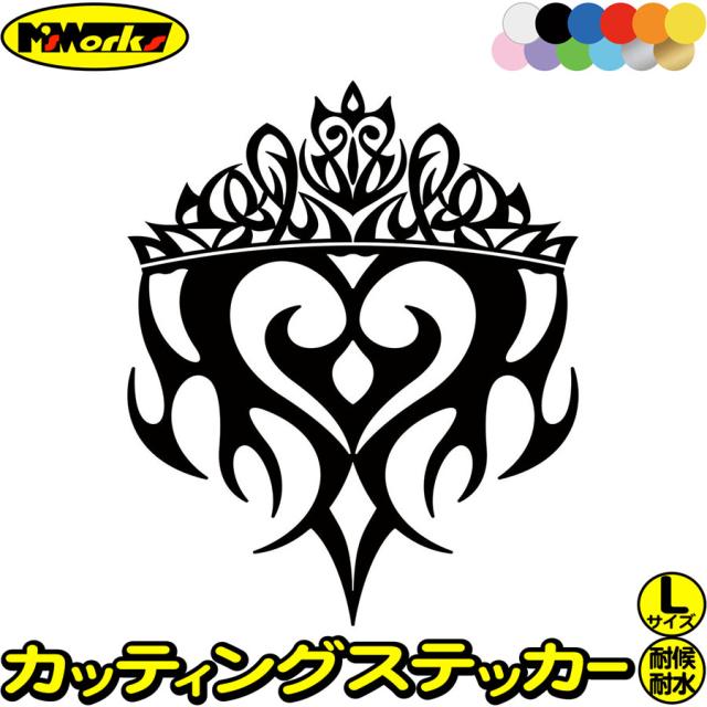 車 バイク ヘルメット かわいい ステッカー ハート 王冠 クラウン トライバル 2 (1枚1セット) サイズL カッティングステッカー 全12色 おしゃれ タンク カスタム ティアラ ステッカー 防水 耐水 アウトドア デカール 転写シール 182mmX150mm