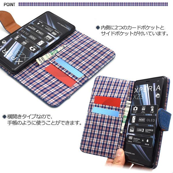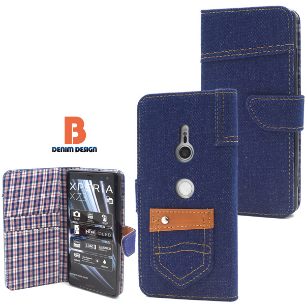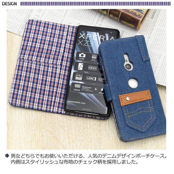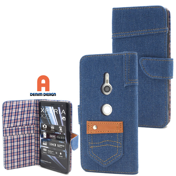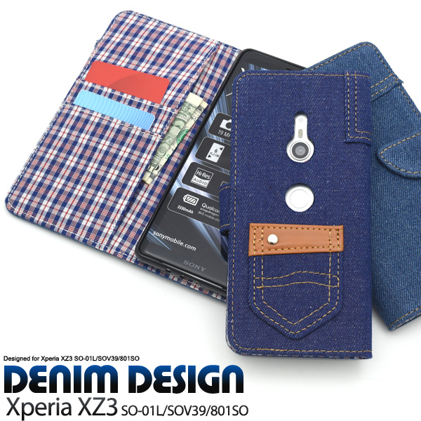スマホケース Xperia XZ3 SO-01L SOV39 801SO用 手帳型 チェックデニムデザイン 携帯ケース シンプル かわいい おしゃれ ケータイケース スマホカバー 装着簡単 denimケース デニムケース カジュアル 携帯カバー auスマホ au携帯ケース スマートフォンケース
