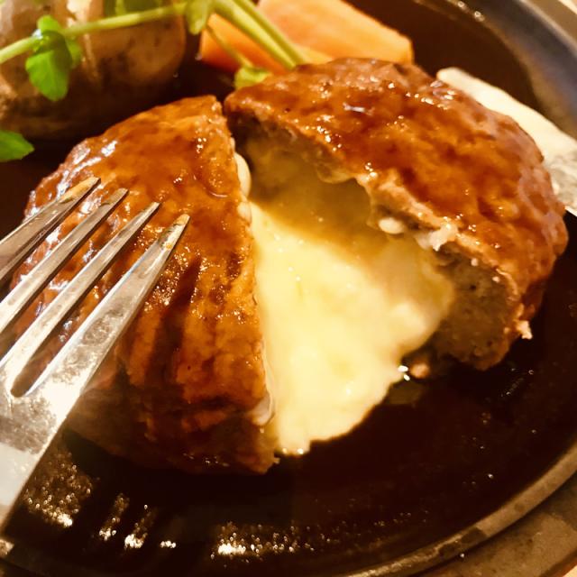 牛・豚合い挽きのハンバーグに、約25%という大量のとろけるチーズをイン、ナイフを入れた瞬間、中からチーズが溢れ出します