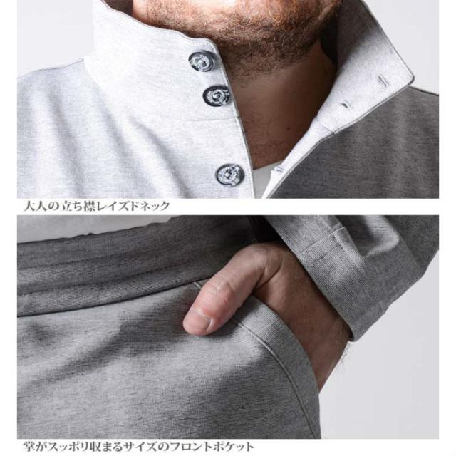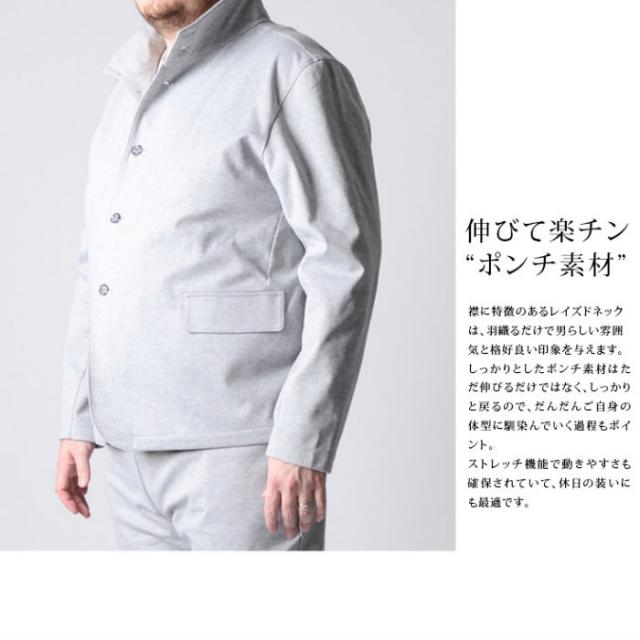 襟に特徴のあるレイズドネックは、羽織るだけで男らしい雰囲気と格好良い印象を与えます。