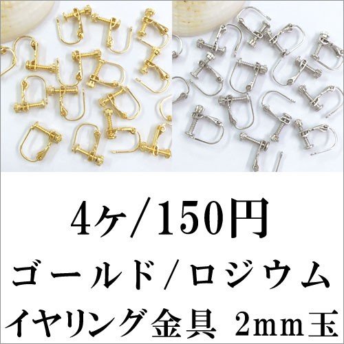 イヤリング金具 2mm玉 2ペア(4個入)