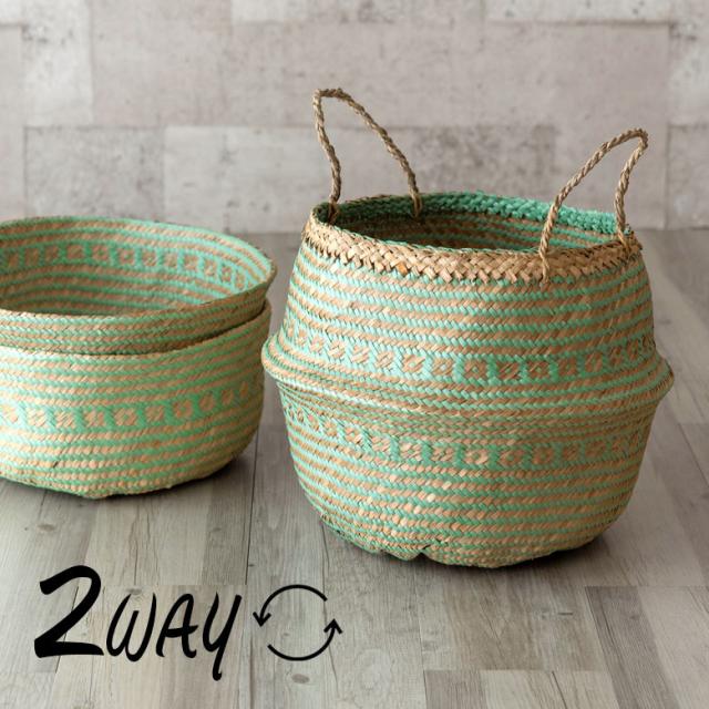 柔らかくしなやかな天然素材、シーグラスの大きめバスケット。折りたたんでも使える、1つで2スタイル楽しめるアイテムです。