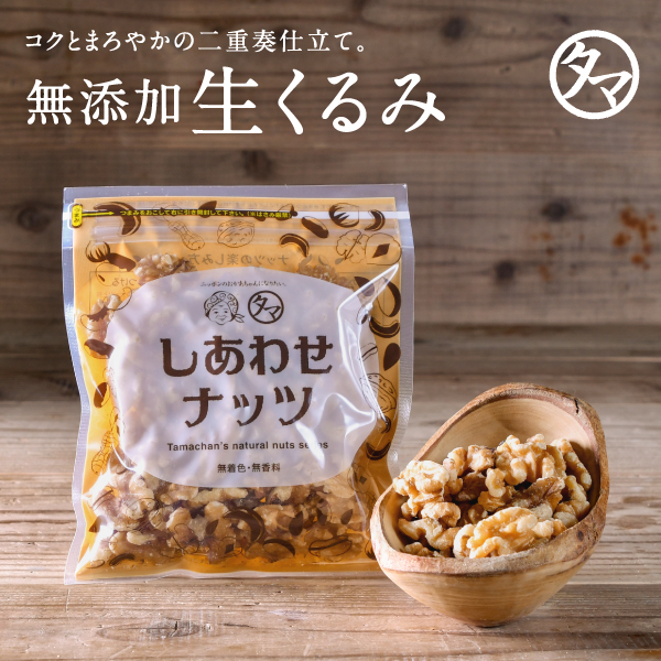 ナッツの中でも良質な油「オメガ3脂肪酸」をダントツに含むクルミ。美容・健康おやつとしてオススメのナッツです。タマチャンショップの生くるみは最高級品質のハワード種を使用。柔らか食感と噛めば噛むほど、旨味がじゅわっと溢れる美味しさは生くるみならでは。毎日のおやつやお料理、スイーツ作りにぜひお楽しみください。