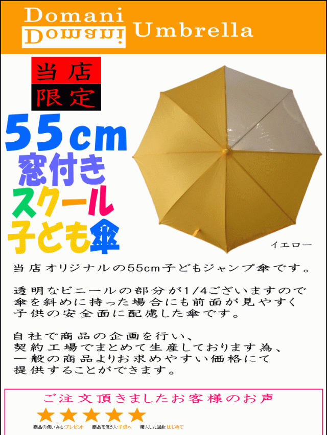 【3980円以上で送料無料】傘 子供傘 前が見やすい55cm 55センチ 学童子供ジャンプ傘 イエロー色 黄色 ピンク色 ライトブルー色 水色 ネイビー色 紺色 ジャンプ傘 子供傘 こども傘 子ども傘 かさ 雨傘 子供用 子供かさ 窓付き 子供傘 男の子 女の子 透明 グラスファイバー製