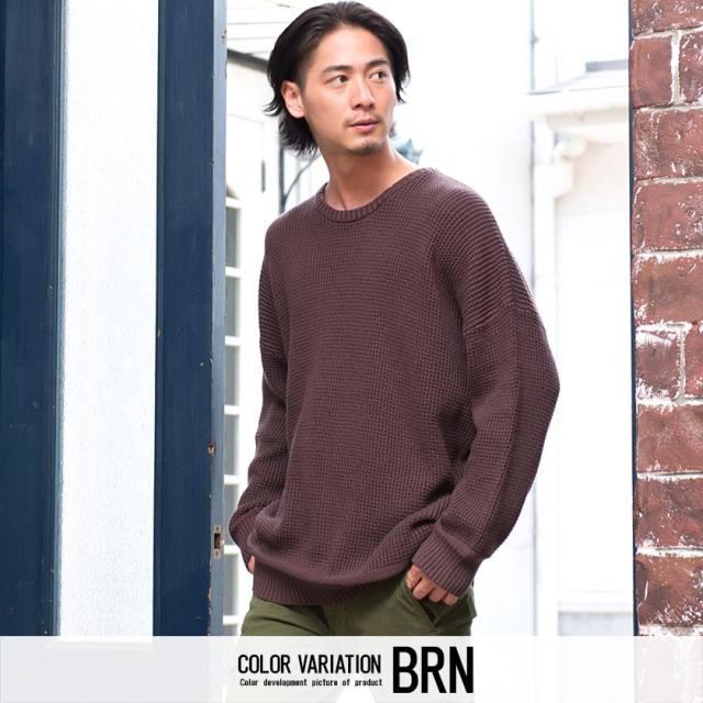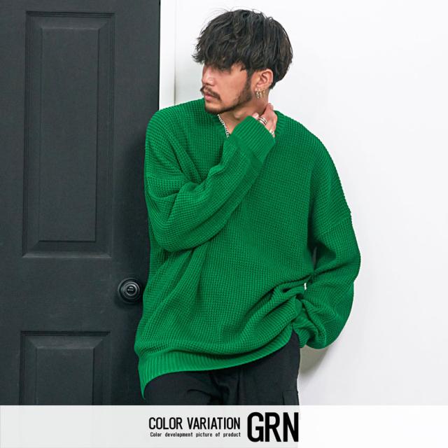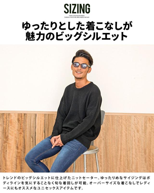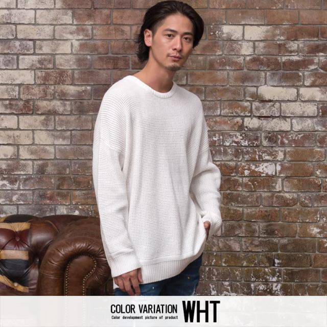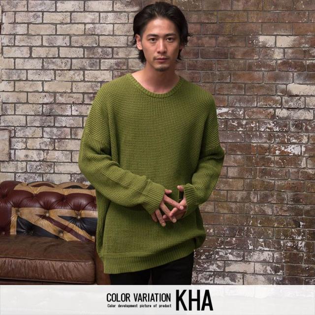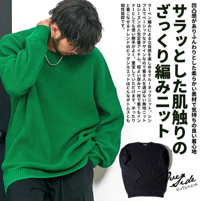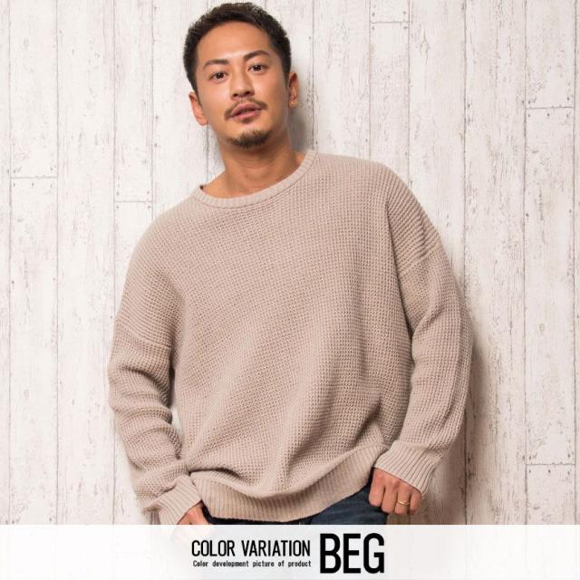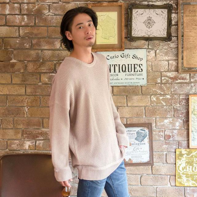 ニット メンズ セーター 無地 大きいサイズ オーバーサイズ ブランド クルーネック ワッフル CavariA キャバリア配送について