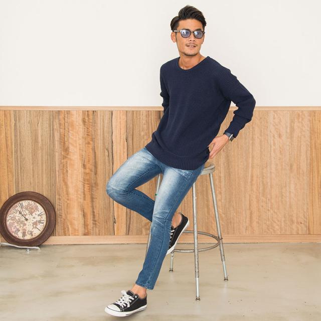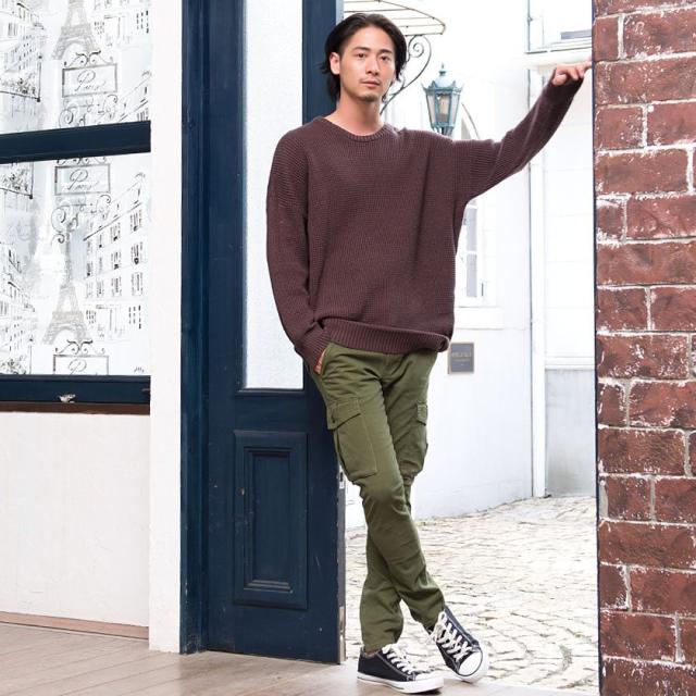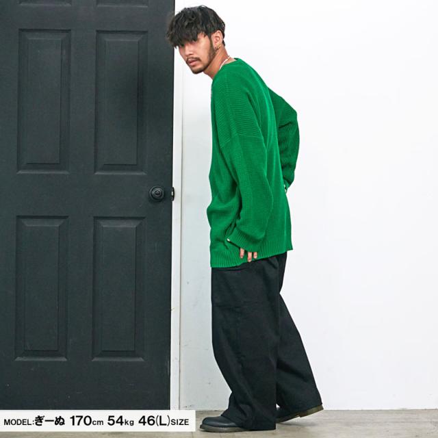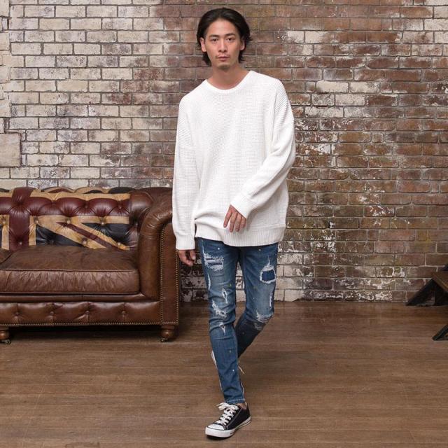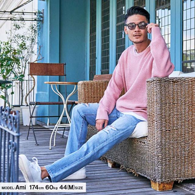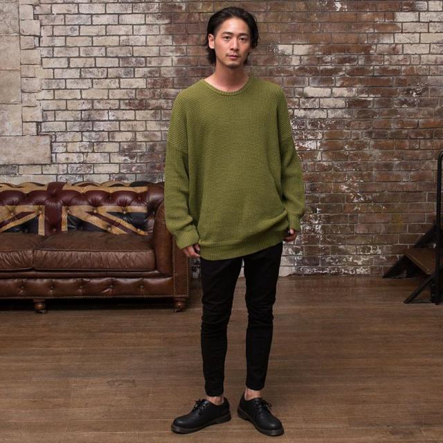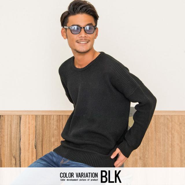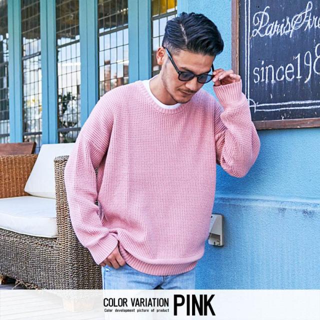 ニット メンズ セーター 無地 大きいサイズ オーバーサイズ ブランド クルーネック ワッフル CavariA キャバリア配送について